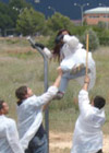 [Fotos] OTAN Game Over en Bétera: 10 antimilitaristas superan las vallas del recinto principal