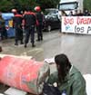 La Ertzaintza ha detenido a los dos manifestantes que se han encadenado esta mañana a un bidón lleno de hormigón ante las obras del Tren de Alta Velocidad que se están realizando en Ordizia. :: Concetración 4 de Junio a las 11.00h en el juzgado de Tolosa.