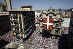 Violencia policial en Iruñea contra los simbolos nacionales vascos. Pese a la intentona de imposición la ikurriña presente en el txupinazo