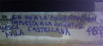 Yesca, la juventud castellana y revolucionaria hacemos pública la acción llevada a cabo en diferentes ciudades castellanas para denunciar la continuidad del franquismo