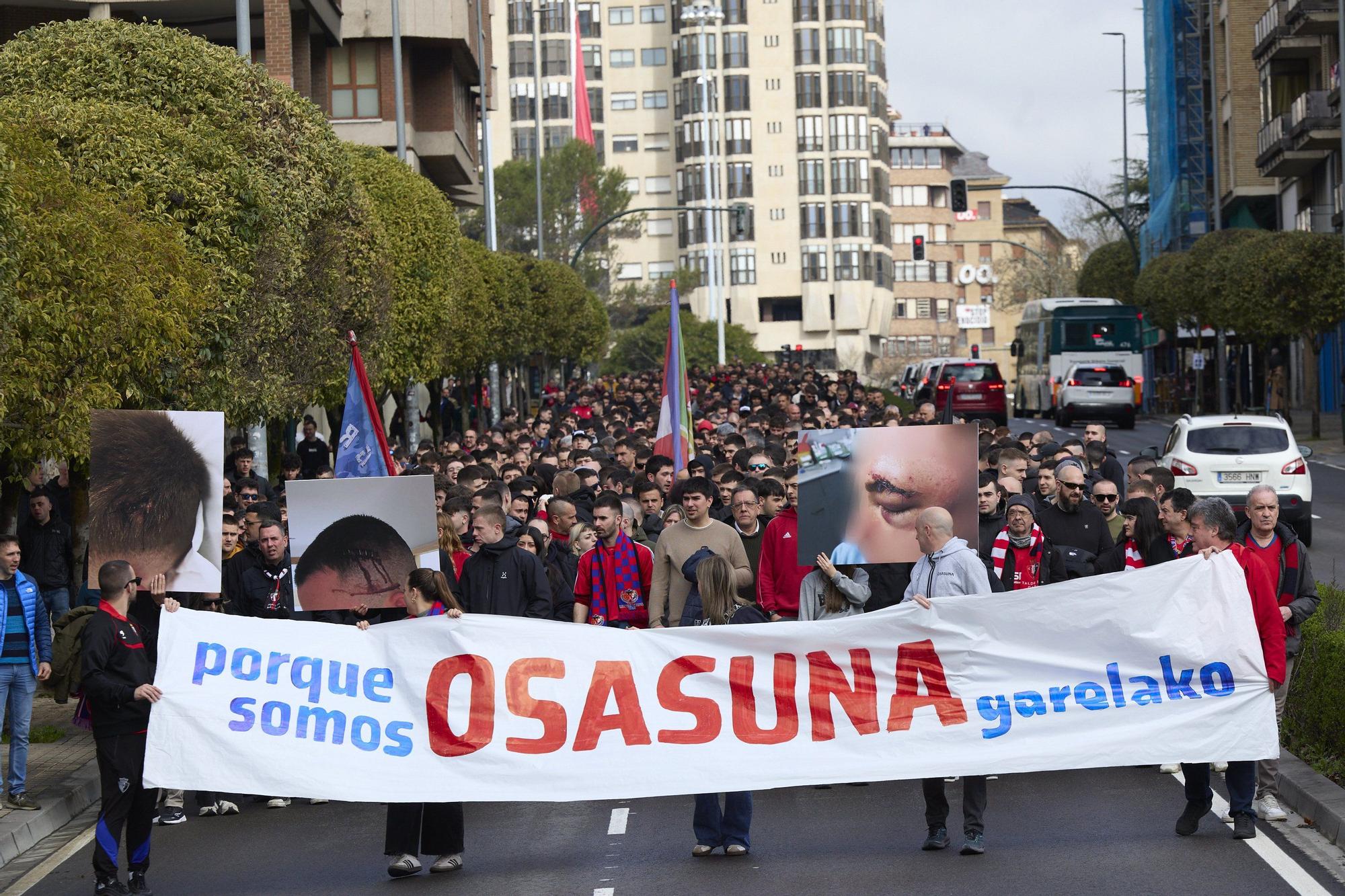 Aficionados de Osasuna protestan por las cargas policiales en El Sadar