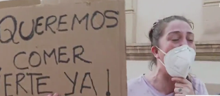 "Que dejen de tomarnos el pelo" o "¿Qué pasa con nuestro dinero?" son las otras manifestaciones, distintas a las de VOX, que no están saliendo en los medios de comunicación. En este caso ha sido ayer en Barcelona, frente a una sede del SEPE cerrada a cal y canto, donde varias decenas de personas se concentraron para exigir el pago de los subsidios.