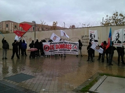 La manifestación salió ayer domingo 14 a las 12:00 desde Eugenia de Montijo con más de un centenar de personas portando pancartas en apoyo al pueblo de Donbass y banderas del Batallón Boctok. El recorrido estaba programado para acabar en Aluche pero dos días antes desde la Delegación de Gobierno se cambió ya que, según ellos, allí suele haber unos pacíficos ucranianos (realmente nazis ucranianos con navajas) y querían evitar altercados.