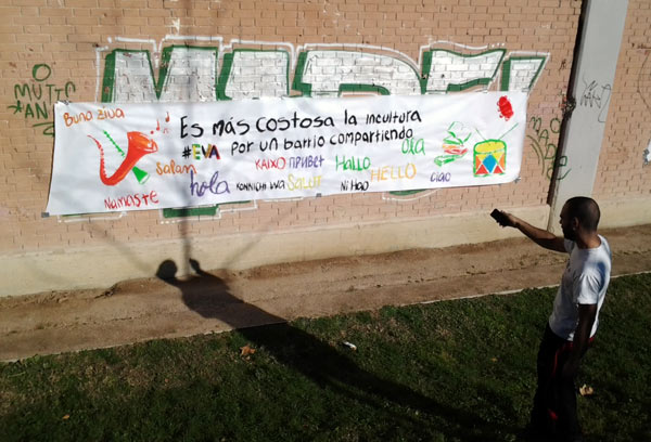 Convocados por el Espacio Vecinal Arganzuela, decenas de colectivos se reunieron el pasado sábado 20 de diciembre para decorar con mensajes reivindicativos una de las paredes del antiguo mercado de frutas y verduras de Legazpi, de 40.000 metros cuadrados y que llevan años abandonado. Es su manera de reivindicar para el barrio, tras la demolición por sorpresa del CSO La Traba el pasado mes de agosto, un espacio que pueda ser autogestionado por las asociaciones y colectivos sociales de Arganzuela.