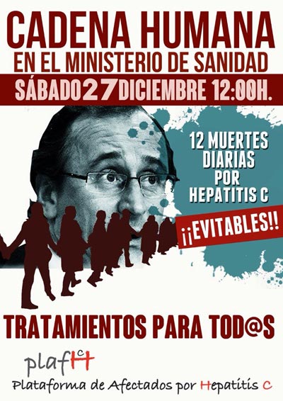 La ASOCIACIÓN PLATAFORMA DE AFECTADOS POR HEPATITIS C, hace un llamamiento a toda la población, a las organizaciones políticas, sindicales y sociales a apoyar las movilizaciones que estamos convocando y a extenderlas al resto de los territorios del Estado.