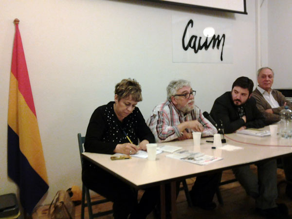 Ángeles Maestro, portavoz de Red Roja, cita a La Haine-Madrid a las 18:30 de la tarde del pasado 23 de enero en el CAUM. En este local iba a tener lugar la presentación del libro "El despertar de los cerdos", de Luciano Vasapollo.