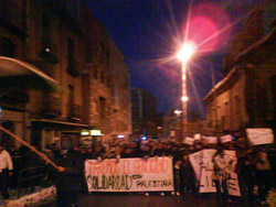 Pese al boicot activo de PSOE, IU, CCOO y UGT, que contraconvocaron con una concentración 24 horas antes de la manifestación anunciada días atrás, 400 personas, en su mayoría africanos, dieron un activo apoyo a la causa palestina, en una encendida convocatoria que recorrió varios barrios de Guadalajara y cuyos asistentes fueron grabados por un cámara de la Brigada de Información de la Policía Nacional. El Centro Social Octubre se quedó pequeño para albergar a los asistentes a la charla sobre Palestina. Envía tus fotos de la manifestación.