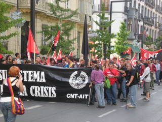 No queremos seguir protestando contra tan manoseado tema, si no dejar claro que esta supuesta crisis no es nueva, es la que la clase obrera viene sufriendo desde hace mucho tiempo. Una crisis creada por este sistema, por su usura, en colaboración con los banqueros, con la patronal y por supuestos con los sindicatos oficiales que nada han hecho ni dicho al respecto, demostrando lo poco que les importa la clase tarabajadora a la que dicen defender.
