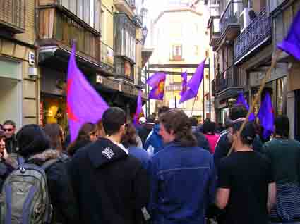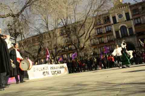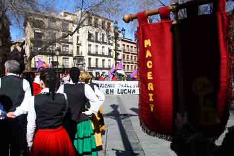 Tras acabar las palabras, nuevos bailes y marcha en pasacalles hacia la Plaza de Padilla para continuar con el Homenaje. Durante la manifestación, de más de 100 personas, la pancarta fue portada por mujeres, y para cerrar el cortejo marchaban 3 compañeros tocando gaitas charras.