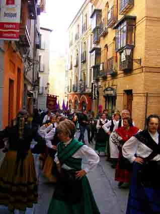 El recorrido del pasacalles espectacular, con los pendones comuneros al viento y con el resonar de las dulzainas y los tambores, que llegaban prácticamente a todos los rincones del casco histórico. Gritos de "María de Pacheco", "Padilla, Bravo y Maldonado" o "Castilla Comunera, nucleares fuera", entre otros, acompañaban el paso de la marcha, ante la atónita mirada de turistas y propios toledanos y toledanas.