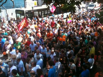 Pero en este tiempo, las cosas han cambiado. Y mucho!! La información, las explicaciones, las noticias que llegaban nos han ido concienciando a unos y otros. Y hoy, muchos de los que estaban en la Concentración en Santander procedían de los Valles. Personas que han dejado hoy sus negocios a pesar de ser un día en el que muchos turistas acuden a los Valles. Ganaderos que han dejado para otro día la hierba a pesar de ser un día en el que lucía el sol. Ancianos que se han subido en el autobús, niños que han dejado de jugar hoy en las pozas para gritar No a la Fractura Hidraúlica.