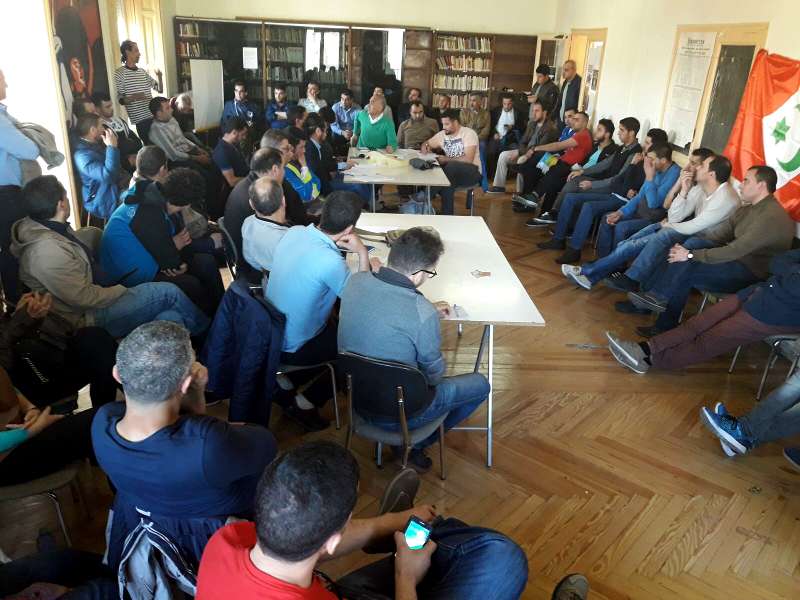 A lo Largo de estos últimos siete meses de movilizaciones pacíficas, el anhelo social se ha extendido a otras capitales y regiones, llegando incluso a concentrar el descontento en las ciudades emblemáticas (Marraquech, Casablanca y Rabat) que llaman a las puertas de palacio. Y no menos significativo, se están coordinando a todos los niveles fuera y dentro del país. En Europa el Movimiento Popular Rifeño se está coordinando en Comisiones formadas muchas de ellas en estos últimos meses y las cuales mantienen un estrecho vínculo entre ellas. En ciudades españolas, francesas, belgas, holandesas y noruegas, entre otros territorios, se organizan con el fin de enseñar al mundo el bloqueo social al que están sometidos, al mismo tiempo que denuncian los hechos acaecidos. El Movimiento Social Rifeño de Madrid se reúne en asamblea en los locales de la CNT. “En la primera asamblea del 12 de marzo, se llegaron a reunir más de 70 asistentes rifeños y rifeñas como se aprecia en la foto de cabecera”, dice Mouruth Chhima el Khattabi activista de este movimiento. Tras el encuentro de Comisiones europeas que tuvo lugar el pasado 20 de mayo en Madrid, el local del sindicato acogió unas jornadas culturales temáticas donde la participación se notaba de forma representativa.