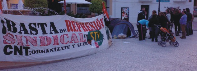 A última hora de la tarde, la Guardia Civil, a instancia del párroco, hizo alarde de un impresionante e inusual despliegue de efectivos para, con la colaboración de varios miembros de la Policía Local, desalojar por la fuerza al compañero ante la presencia de numerosos vecinos que simpatizaban con la protesta. Al día siguiente, el trabajador se instaló en una tienda de campaña frente al templo, decidido a continuar la huelga de hambre hasta obtener una reacción de la empresa y del Ayuntamiento del municipio.
