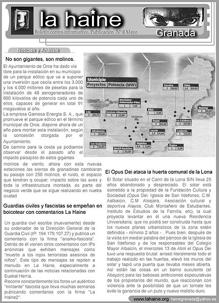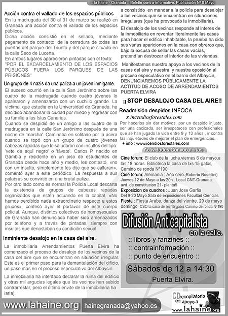 En la calle boletín mensual contrainformativo de La Haine-Granada