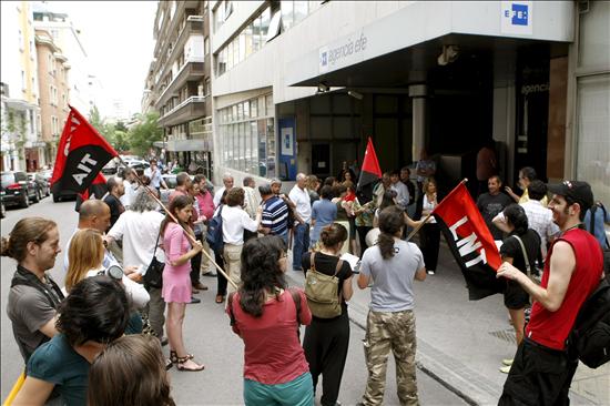 Un grupo de ex colaboradores de Efe, convocados por el sindicato CNT y formado por unas 30 personas, ha protestado en el día de ayer ante la sede central de la empresa, en desacuerdo con la reorganización de la red de corresponsales que este medio de comunicación ha puesto en marcha.