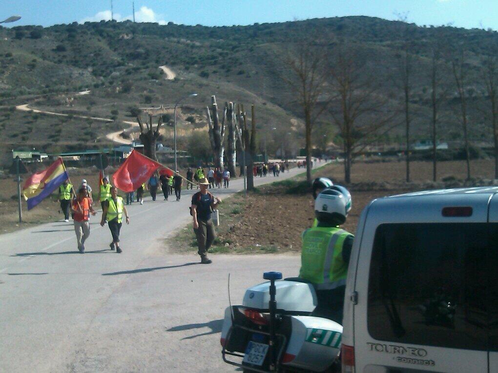 La columna Andalucía recorrió ayer la etapa Seseña-Pinto_Parla. 200 antidisturbios de la guardia civil intentaron cortarles el paso y desviarles para obligarles a hacer el doble de kilómetros, finalmente, entre gritos contra la represión se negoció con los mandos y se consiguió seguir con el itinerario previsto, por la autovía.