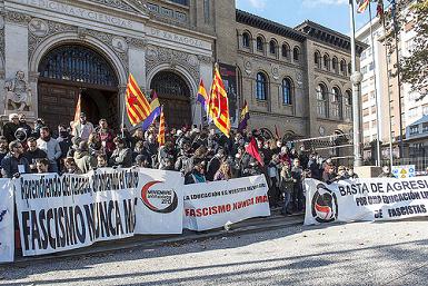 Durante la lectura del comunicado, Noviembre Antifaixista recordaba que “son en los momentos de excepción, como el de crisis estructural del capitalismo que vivimos actualmente, cuando el fascismo encuentra más facilidades para crecer y transmitir su discurso de odio y discriminación. Intenta erigirse como actor de cambio mediante ambiguos mensajes de carácter populista”. En este sentido expresaban que la sociedad “necesita crear una respuesta conjunta contra el fascismo, en la que cabe cualquier manifestación contra las medidas que afectan a educación, sanidad, derechos laborales y sociales, y sobre todo de rechazo al fascismo que ahora intenta hacerse hueco en las reivindicaciones sociales de Aragón”.