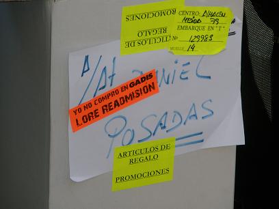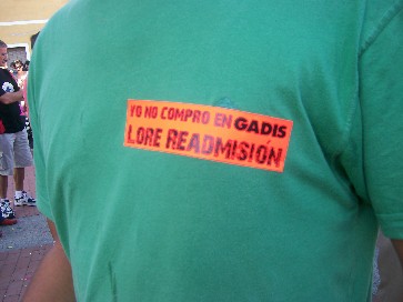 Varios compañeros del sindicato se desplazaron al pueblo aprovechando el gran número de personas que se reúnen por motivo del pregón que da el inicio oficial a las fiestas de Laguna. Los compañeros portaron una pancarta en la que se leía “Basta de explotación en el comercio, Lore readmisión”. También se repartieron varios cientos de pegatinas en las que ponía “Yo no compro en Gadis, Lore readmisión”, las cuales se podían ver pegadas en la ropa de un número importante de gente que se encontraba en la plaza donde se celebraba el evento.