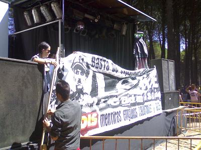La gente demostró también su simpatía hacia la compañera facilitando la colocación de la pancarta a modo de cabecera en el escenario bajo la mesa del discjockey que nutría de música a los asistentes.