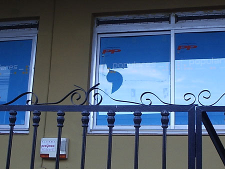 La falta de alternativas para la juventud, la pasividad de los representantes políticos y el continuo acoso policial, unido a la cada vez mayor concienciación política de los jóvenes, lleva a estos a transformar su odio en ataques muy concretos y que en la madrugada del pásado sábado tuvieron como principal objetivo la sede del partido Popular en la localidad.