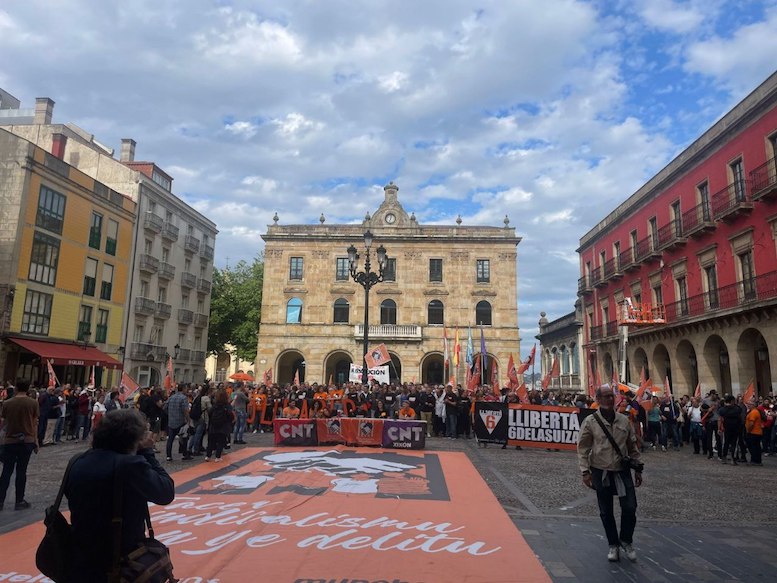 El caso de ‘Las 6 de La Suiza’ ha sido un símbolo de la lucha por los derechos sindicales en todo el estado. Lo que comenzó en 2017 como una reclamación laboral por impagos y acoso sexual en la empresa Pastelerías La Suiza en Gijón, derivó en una persecución judicial contra los principios más básicos del sistema así llamado democrático que llevó a prisión a seis personas afiliadas a la Confederación Nacional del Trabajo (CNT).