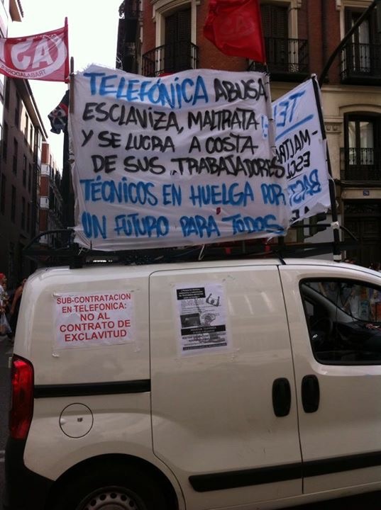 A la llegada a la Puerta de Sol, técnicxs y solidarixs repartían los panfletos hechos para la manifestación y procedieron a hablar dos colectivos en lucha presentes: Correos en lucha y Coca-cola en Lucha. Lxs trabajadorxs de Correos nos recordaron a sus compañerxs de Majadahonda que llevan casi el mismo tiempo que lxs técnicxs en huelga indefinida e incidieron en la precariedad que viven en el día a día en Correos.