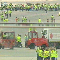 La okupación de las pistas del aeropuerto de El Prat fue la reacción espontánea de los trabajadores ante las oscuras perspectivas que apuntaban a su futuro laboral debido a la adjudicación que, desde la administración, se ha concedido a otras compañías de los trabajos de handling (carga y descarga) que hasta la fecha realizaban ellos mismos.