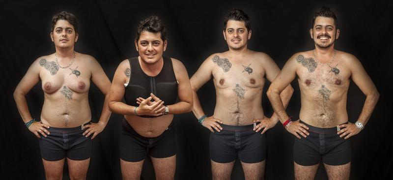 “Vínculos” es una de las partes en las que se divide el libro, que muestra una variedad de relaciones que nuevamente la gente cis suele desconocer: parejas de dos hombres trans o de mujer trans y hombre trans, o familias con parejas heteronormativas que siguen unidas después de iniciarse el tránsito. “En parejas de largo recorrido, si una de ellas decide hacer un tránsito, muchas veces se rompe esta pareja. A veces no, pero cuesta mucho. Es complicado porque puede ser un golpe importante para la otra persona, que se siente sola. Pero si tiene información de otras personas en la misma situación, se siente acompañada, no está sola en el mundo”.