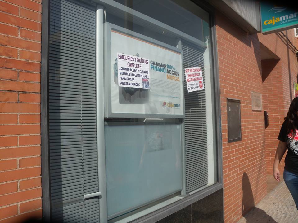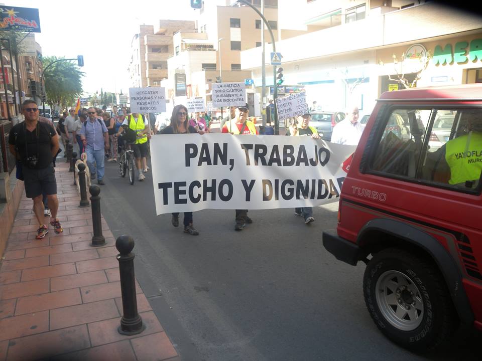 Pedimos actuaciones políticas urgentes en la Región, queremos una Ley Regional de Vivienda que impida los desahucios y garantice el Derecho constitucional a una vivienda digna. Queremos la Ley Regional de Renta Básica Universal que garantice que ningún ciudadano de la Región sufra la pobreza extrema. Es necesario acabar con la corrupción y democratizar la vida política de la Región. Hace falta expulsar a todos los corruptos de la vida pública. De los 45 municipios de la Región, tenemos 40 municipios con imputados y casos tan sangrantes como Nueva Condomina, Nova Cartago o Marina de Cope. Es necesaria una Reforma de la Ley Electoral que elimine las 5 circunscripciones y garantice la igualdad de voto de todos los ciudadanos.