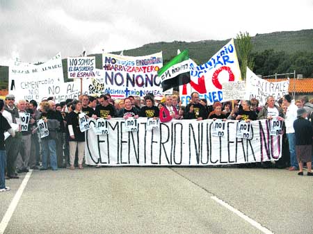 Nuestro país es el único de la UE que, disponiendo de centrales nucleares en funcionamiento desde los años 60, aún carece de sistema centralizado de gestión de los residuos radiactivos de alta actividad. No es un hecho casual, desde la década de los 80 han venido desarrollándose notables luchas ciudadanas que han impedido la construcción de cementerios nucleares. Las movilizaciones de Aldeadávila de la Rivera (Salamanca), contra el proyecto del Berrocal (Toledo), contra las zonas candidatas a almacenar el cementerio definitivo (las llamadas zonas ZOA, en diversos puntos de la península con especial relevancia en Córdoba y Burgos), contra el almacenamiento de pararrayos radiactivos, contra el intento de ubicar el almacén nuclear en Trillo en diversas ocasiones de los años 80, 90 y en este siglo, contra el proyecto de proponer a Peque (Zamora) para el cementerio transitorio,… explican esta demora. En todos los casos un activo movimiento ecologista que ha sabido dinamizar y construir amplios movimientos sociales, ha obstaculizado el desarrollo de la industria nuclear sabiendo encontrar su talón de Aquiles. Como venían reflejando las encuestas y se está viendo claramente en estos días, la sensibilidad social contraria a estas instalaciones es muy viva y ello hace que percuta directamente en todos los partidos políticos, incluidos los mayoritarios, que se ven abocados a adoptar posiciones en contra de un acuerdo unánime de los mismos partidos suscrito en 2004.