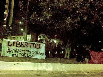 Según ha relatado a La Haine uno de los solidarios, entre 50 y 60 personas estuvieron ayer concentrados frente a la comisaría provincial de Málaga desde las 8 de la mañana a las hasta las 3.30h de la mañana, para exigir la liberación de los -al menos- 16 detenidos antifascistas, aunque todavía no se puede confirmar que la operación esté cerrada.