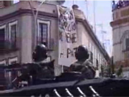 Asímismo, se quería denunciar la política militarista y armamentista del gobierno. A pesar de la insistencia en las labores humanitarias y en la profesionalización del Ejército con la que nos saturan los medios de comunicación- funciones que bien pueden ser desempeñadas por técnicos de la población civil- está institución sigue siendo un reducto de los valores del franquismo.