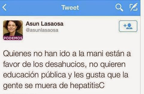 Pero Asun Lasaosa, que no sé si es, “gente corriente” o podemita influyente, jefa o india, tampoco es que se corte un pelo.