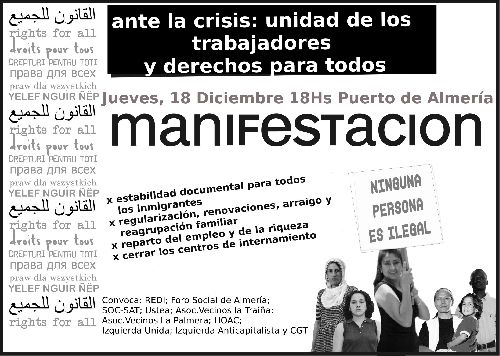 Manifiesto de la Plataforma contra la Crisis de Málaga ante la manifestación del 18 de Diciembre.