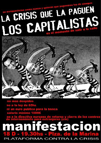 El sábado 20 de Diciembre , tod@s a manifestarnos por el reparto de la riqueza, por la socialización de los beneficios y no de las perdidas y contra su “crisis” y el capital.