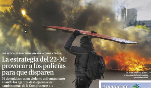 La respuesta de los mass-media a los acontecimientos de los últimos días, sin duda siguiendo instrucciones de los poderes políticos y económicos que los dirigen, está siendo aumentar la criminalización de la lucha social hasta unos límites insospechados. Desde los disturbios del día 22, cuando la policía atacó la mayor manifestación que ha habido en la historia de Madrid, el discurso de los medios ha ido subiendo de tono.