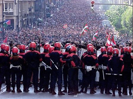 Nos dicen que mientras haya violencia (la de ETA solamente), no hay ninguna posibilidad de solucionar el conflicto vasco. Y eso lo dicen quienes tienen responsabilidad política y organizativa directa en la tortura a personas detenidas, clausura de sedes políticas, reventar mítines electorales, secuestro de papeletas de votos, apaleamiento y mutilaciones de manifestantes, allanamientos y cierres de medios de comunicación, encarcelamiento de activistas y representantes políticos, bestialismo policial en funerales de militantes abertzales, etc.