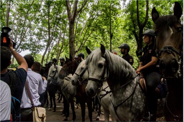 Desde dos horas antes del momento previsto para el inicio de la concentración en Neptuno, todas las bocas de metro y las calles adyacentes a la referida plaza, estaban tomadas por las fuerzas de las Unidades de Intervención Policial, con un despliegue de 50 furgonetas con sus correspondientes dotaciones así como al menos una docena de patrullas a caballo y un helicóptero. El objetivo de este desproporcionado y costosísimo, desde el punto de vista económico, despliegue policial, era impedir que una concentración pacífica y democrática de ciudadanos y ciudadanas se llevara adelante.