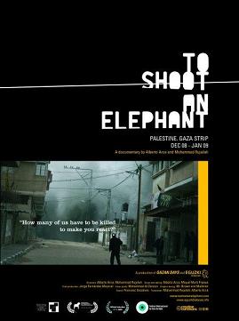 Sinopsis: “To shoot an elephant” es un relato sobre un testigo presencial en la Franja de Gaza. El 27 de diciembre de 2008, la Operación “Cast lead” (Plomo Fundido) estuvo disparando a elefantes durante 21 días. Imágenes urgentes, insomnes, escalofriantes y sucias de los únicos extranjeros que decidieron y consiguieron permanecer, empotrados en las ambulancias de la Franja de Gaza, al lado de la población civil palestina.