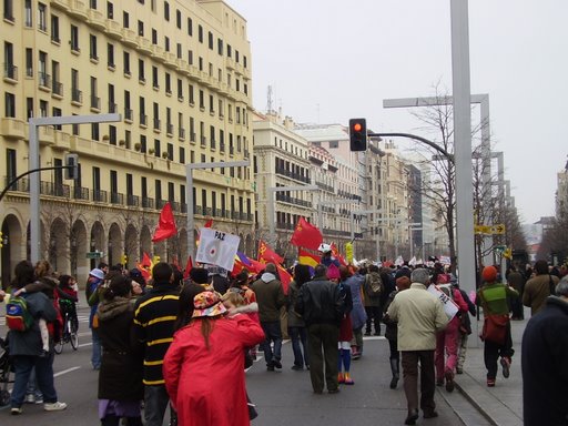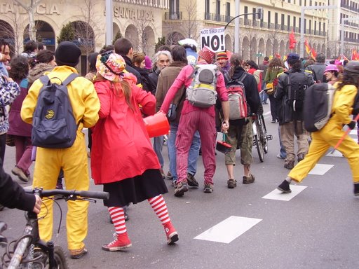 Zaragoza volvió ha salir a la calle a denunciar la cultura de guerra que se intenta imponer en la ciudad desde hace años. En la mañana de ayer, más de 2.000 personas partieron en manifestación desde el centro de Zaragoza y encabezados por una pancarta en la que se leía "Por una cultura de la paz, hace 20 años y ahora, OTAN no, bases fuera". La marcha convocada por la Plataforma Anti OTAN, marchó por las principales calles de la capital aragonesa en un ambiente festivo a ritmo de una batucada local y de la performance "jejército" que simulaba el despilfarro de recursos económicos que supone la institución militar. La manifestación en la que participaban numerosas organizaciones como CGT, CNT o Ecologistas en Acción, avanzó coreando consignas contra el militarismo, la OTAN y todas las guerras que se promueven desde el poder. La lectura de un comunicado en la Plaza del Pilar puso fin a una jornada que revivía el movimiento Anti OTAN que caracterizo la ciudad durante años.