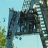 Desde la altura de una "atracción" se denunció la complicidad de los bomberos en el desalojo de La Favela, ya que fueron ellos quienes tiraron el tejado ilegalmente.