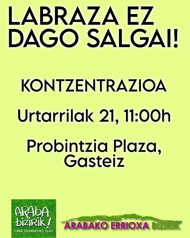 Labrazako herriarekin elkartasunez diputazio aurrean elkarretaratuko