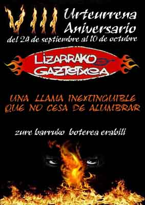 *DURANTE TODO EL ANIVERSARIO ABRA TODOS LOS DIAS DISTRIBUIDORA DE MATERIAL LIBRE (KARAKOL BANAKETAK) Y EXPOSICION DE LA HISTORIA DE LA GAZTE ASANBLADA DE LIZARRA.