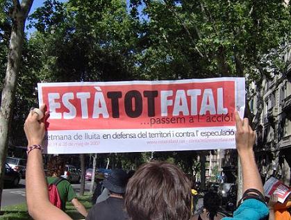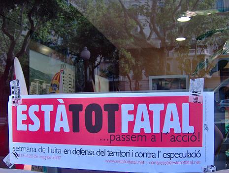 L"aparador de l"oficina ha quedat guarnit amb pancartes i cartells amb el lema: "Està tot fatal. Passem a l"acció", per aclarir que aquesta acció s"emmarca en una campanya més àmplia de lluita contra la destrucció dels nostres barris i viles i del patrimoni ecològic.