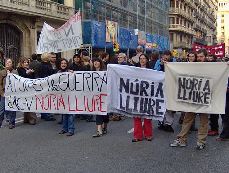 Cabe destacar que al final de la manifestación de "aturem la guerra" se comunicó tras la lectura del manifietso que había una manifestación a las 19h por la libertad de Nuria Pórtulas, lo que supuso un gran golpe para la comisión de Iniciativa.