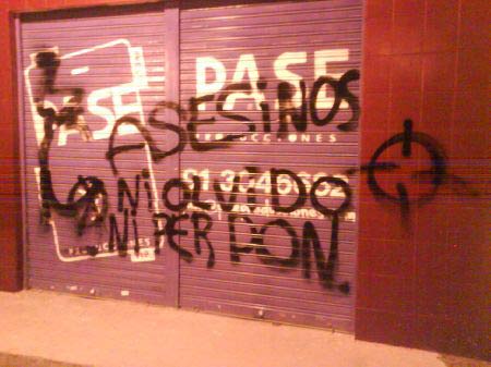 Según un correo llegado a La Haine la noche del viernes 20 de junio se realizaron pintadas en la sede de Pase Producciones.