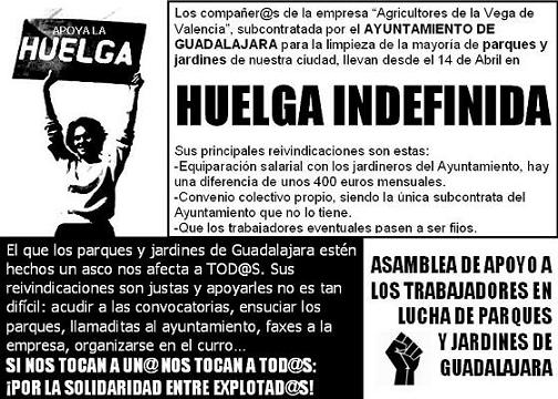 Acto-mitin de los trabajadores de parques y jardines, en el que intervendrán además compañeros de otras luchas. Tendrá lugar a las 19:30 horas en el parque de la calle Medrano de Miguel (detrás del Palacio del Infantado / cruce con la Avenida del Ejército).