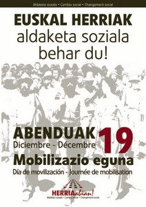 Así las cosas, el próximo 19 de diciembre vamos a movilizarnos por el cambio social que necesitan el Planeta y Euskal Herria. Las convocatorias de las movilizaaciones son: