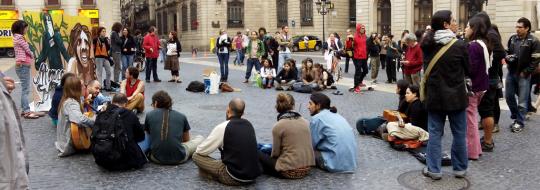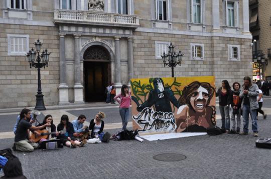 El día de hoy, 4 de mayo de 2011, un nutrido grupo de personas nos reunimos en la céntrica plaza Sant Jaume, en Barcelona, para recordar a cinco años de distancia los acontecimientos ocurridos los días 3 y 4 de mayo del 2006 en San Salvador Atenco y Texcoco, Estado de México. El evento dio incio a las siete y media de la noche y durante un espacio aproximado de dos horas se llevaron a cabo diversas actividades simultáneas: mientras se realizaban los últimos trazos a un gran mural con graffiti, se leyeron las palabras de las ex-presas Italia Méndez y Norma Jimenez, de la Campaña Permanente contra la Represión Política y la tortura seuxal; se escuchó la voz de Ignacio del Valle y Adán Espinoza, del FPDT y se repartieron volantes informativos a la gente que se acercó a la plaza, todo musicalizado con guitarra, canto y el son jarocho que cerró la jornada.