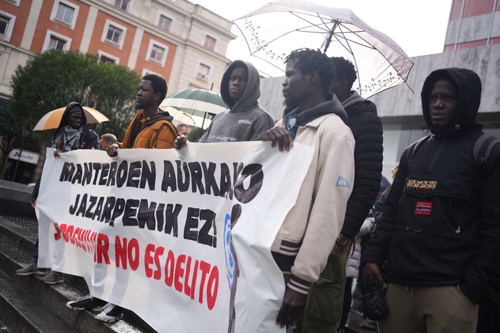 Una movilización ha denunciado este sábado en Bilbo la represión policial del pasado jueves contra los manteros en la Gran Vía. Mbolo Moyo Doole y Manteroekin Bat han destacado que no fue un hecho aislado, sino que «refleja la estructura de poder racista en nuestra ciudad».